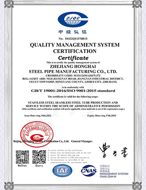 浙江宏海鋼管制造有限公司(前身為溫州市皓立不銹鋼有限公司)成立于2016年11月,公司注冊資金5180萬元,是一家集生產、銷售與一體的不銹鋼無縫鋼管及制品的民營企業。公司位于風景秀麗的甌江上游,有“江南桃源秘境”之稱的麗水市松陽縣江南工業區;交通便利,離松陽高速出口僅4公里,離衢寧鐵路松陽站僅2公里;占地面積30余畝,總投資9000多萬元。